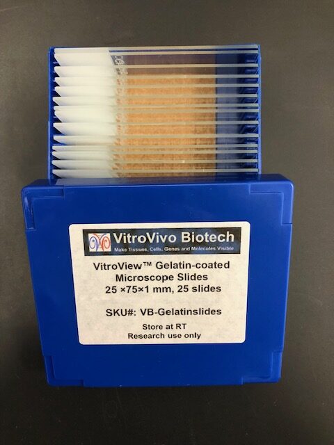 VitroView™ Gelatin-coated microscope slides are specially prepared glass slides with a thin layer of gelatin to enhance adhesion of biological specimens such as tissue sections or cells. These slides are ideal for histology, immunohistochemistry, and cytology applications.