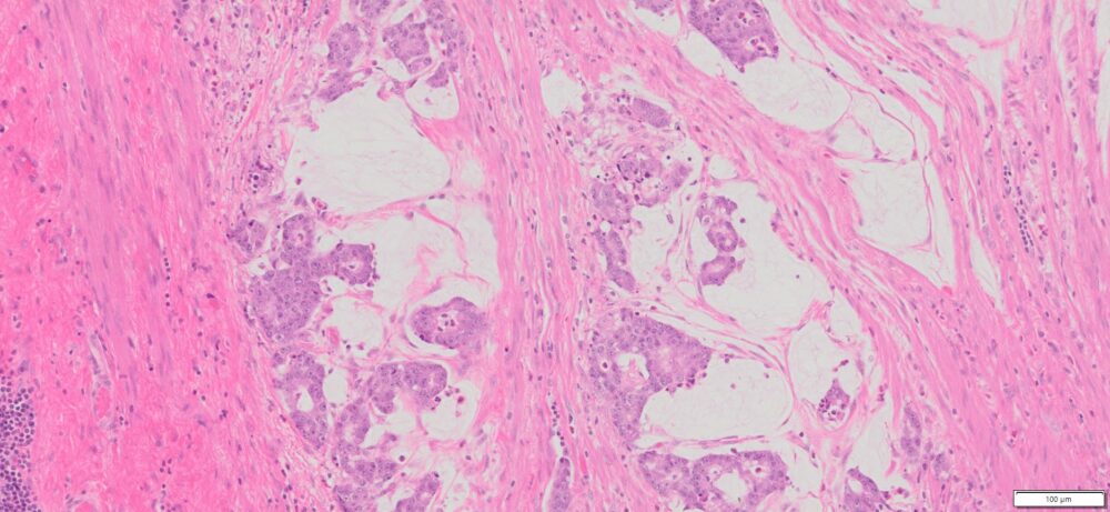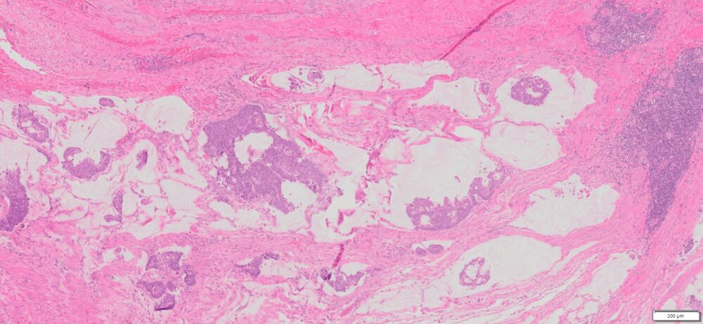 HuPS-21001T1 Human Appendix Mucinous Adenocarcinoma, H&E, 10x