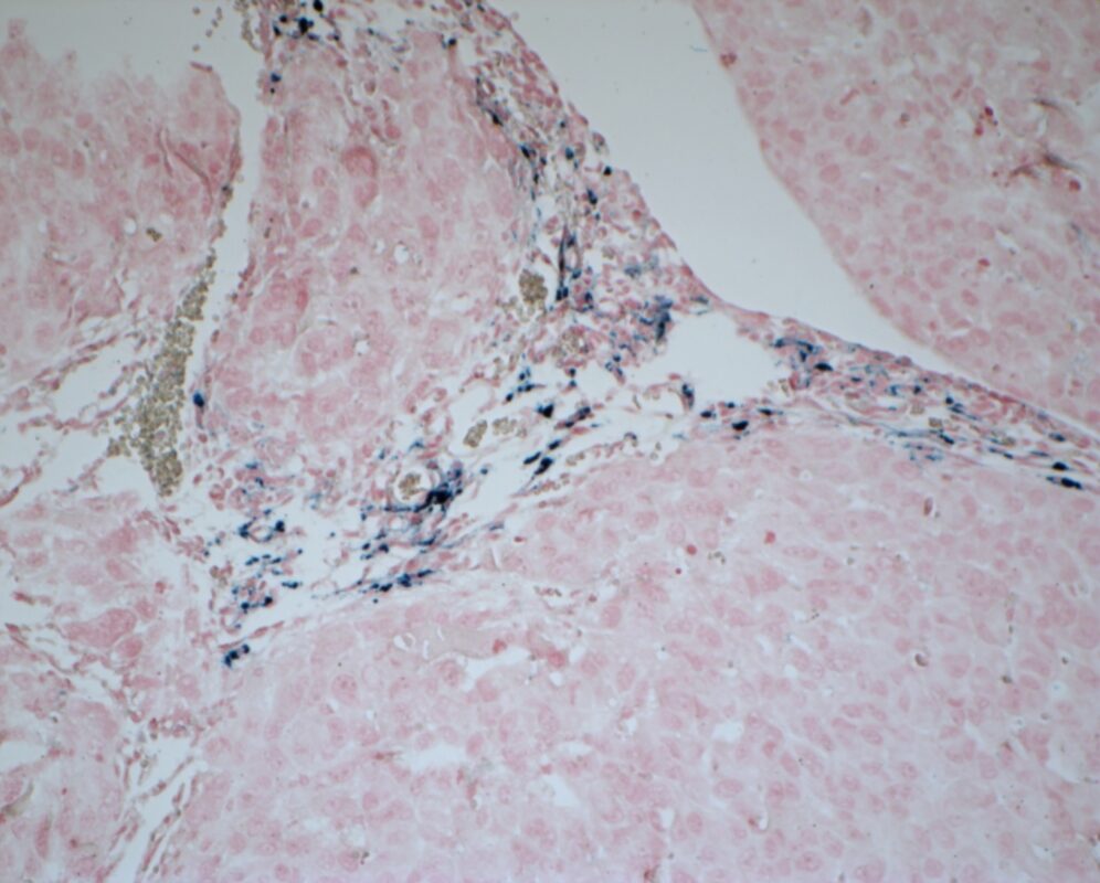 - Iron (hemosiderin)———–blue