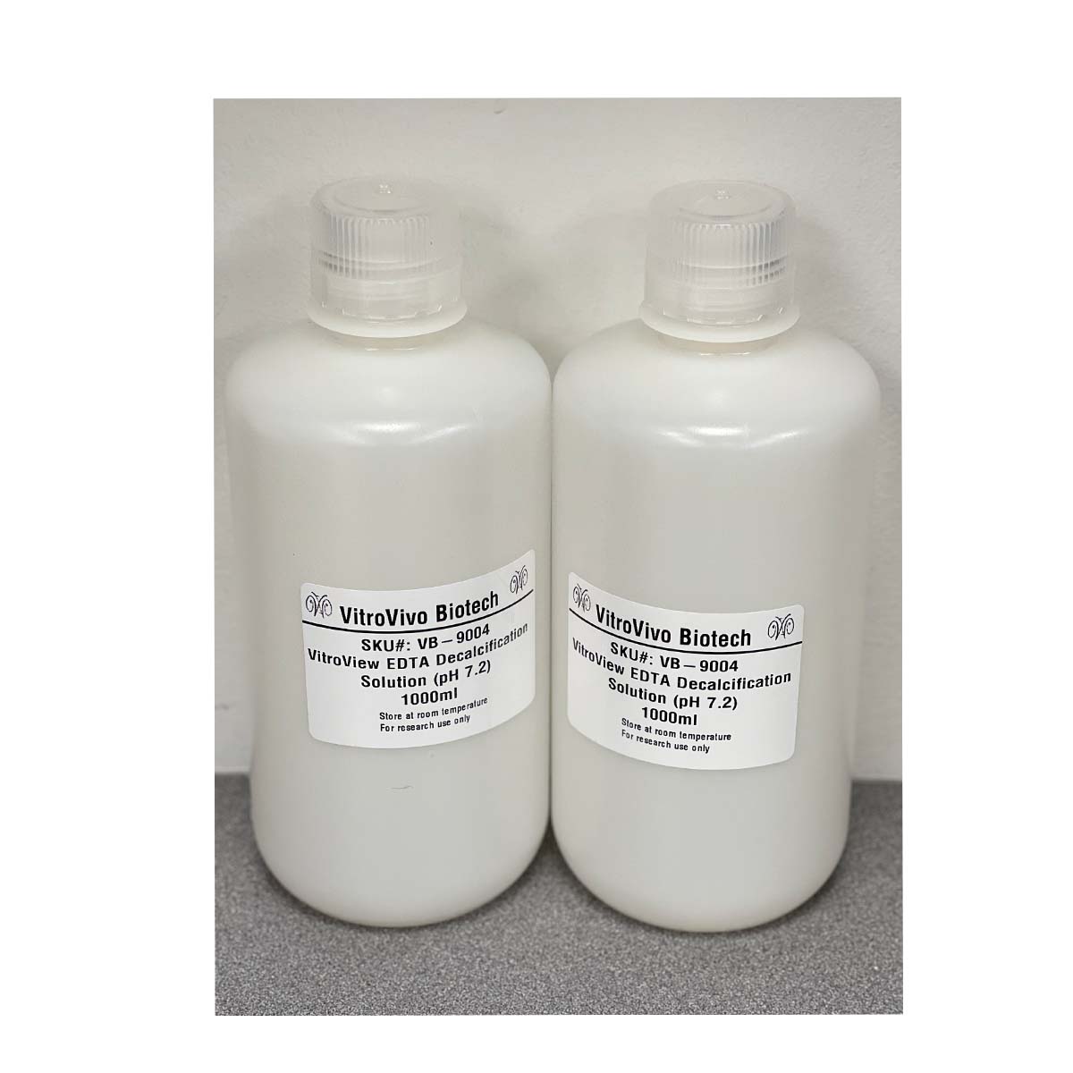 VitroViewTMEDTA Decalcification Solution (pH 7.2) is a gentle, chelation-based reagent designed for the removal of calcium salts from calcified tissue specimens. It is particularly suitable for applications requiring excellent preservation of tissue morphology, cellular detail, antigenicity, and nucleic acids.