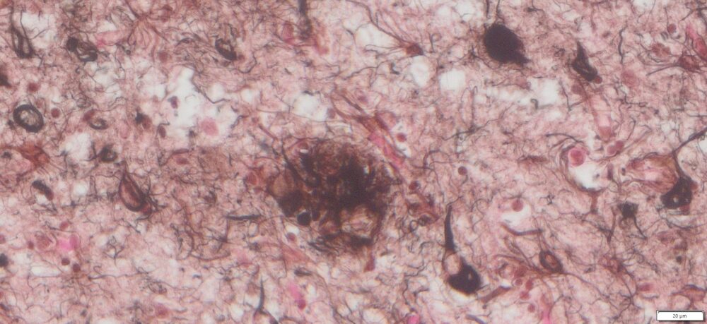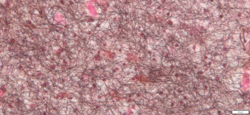 Gallyas silver stain is a specialized histological staining technique widely employed in neuroscience research to visualize pathological alterations, notably neurofibrillary tangles and senile plaques, prevalent in neurodegenerative conditions like Alzheimer’s disease. This staining approach selectively targets paired helical filaments, comprising hyperphosphorylated tau protein, facilitating their detection and microscopic examination. Renowned for its ability to provide high contrast and resolution, Gallyas silver stain serves as a pivotal tool in deciphering the intricate structures of the brain and elucidating the underlying mechanisms of diverse neurological disorders. The VitroView™ Gallyas Silver Stain Kit is a meticulously optimized staining kit specifically designed for identifying changes associated with neurofibrillary tangles and senile plaques within the brain.