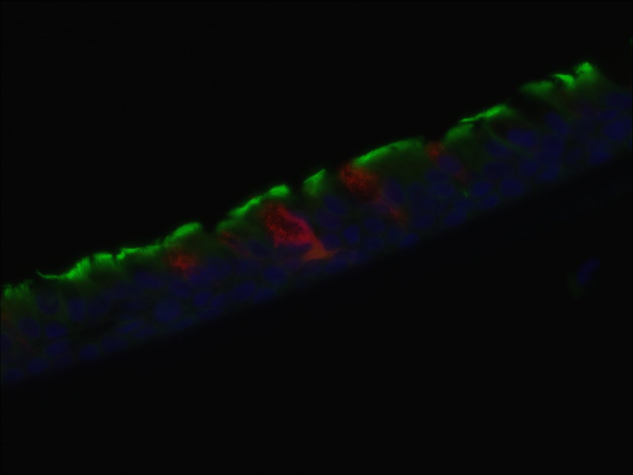 A double immunofluorescence (IF) procedure is needed in order to be able to examine the co-distribution of two different antigens in the same sample.