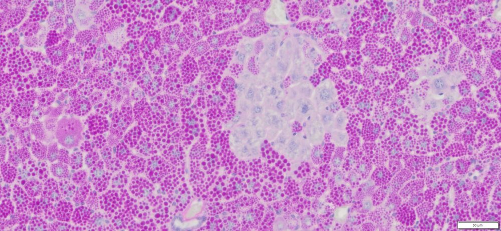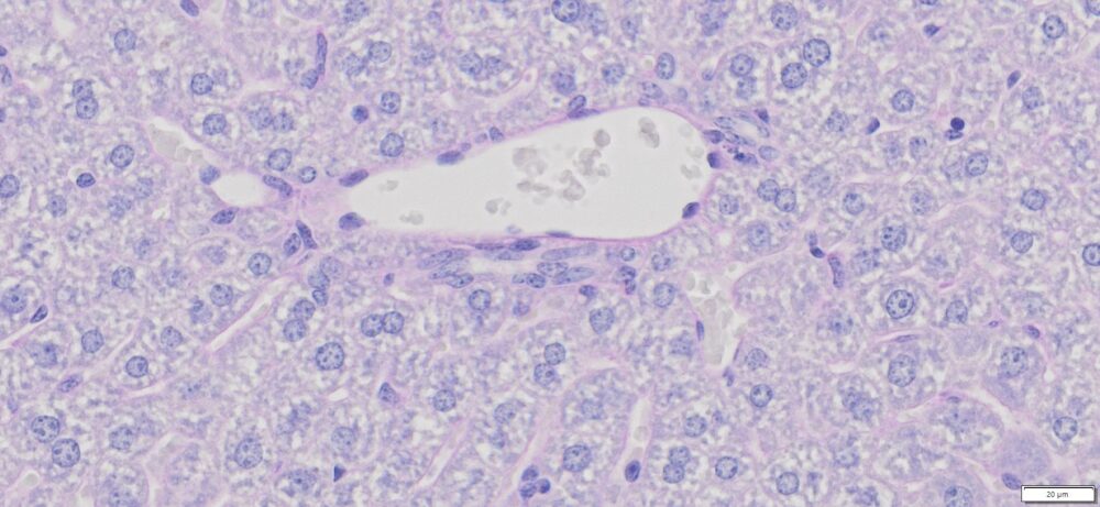Mouse liver FFPE sections from same sample as above, PAS-Diastase Stain , 40x